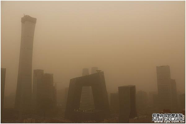 如圖所示,這是28日北京朝陽CBD核心區(qū)的實拍圖。在PM10近2000的情況下,拍攝出來的照片好像加了一層復古濾鏡,帶著斑駁的歲月痕跡,覆著厚重的歷史風沙,也遮住了攝像頭的追蹤。