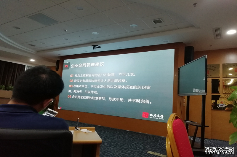 此次課程培訓(xùn)在海南大廈進(jìn)行,是由格局商學(xué)人才學(xué)院的傅思元翔老師講解本次課程。課程中,老師多次運用實例詳細(xì)講解簽訂合同中所面臨的法律風(fēng)險,以及不同類型的合同應(yīng)注意的相關(guān)法律事項。在簽訂合同過程中要注意以下四方面:一是合同的起草權(quán)力;二是嚴(yán)格審查對方的主體資格和合同履行能力;三是訂立合同應(yīng)采用合同書的形式;四是合同的內(nèi)容要明確和完整。