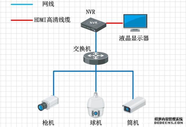 小型的監(jiān)控系統(tǒng)組成非常簡(jiǎn)單,通常就是前端幾個(gè)攝像頭,然后接交換機(jī),交換機(jī)接NVR,NVR直接連接顯示器,直接在顯示器上預(yù)覽畫面,NVR的解碼能力比DVR的解碼能力更強(qiáng),現(xiàn)在普通的NVR都是支持1-8路的1080P的攝像頭解碼,但最近幾年也出現(xiàn)幾款的高端NVR,集成更加強(qiáng)大的解碼功能,但絲毫未改變NVR就是存儲(chǔ)的產(chǎn)品,所以一般通過(guò)NVR顯示,都是應(yīng)用在一些低端,點(diǎn)位數(shù)較小的項(xiàng)目中,比如超市和店鋪這類預(yù)算較低的項(xiàng)目。同DVR顯示一樣,普通的NVR的監(jiān)控上墻也會(huì)遇到畫面切換控制不方便,且不支持視頻畫面開(kāi)窗漫游等功能。